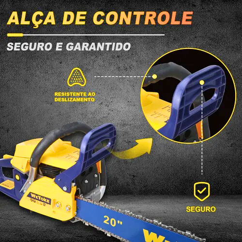 Segurança integrada: inclui dispositivo de frenagem da corrente (chain brake) e protetor de mão frontal para minimizar riscos em casos de retorno.