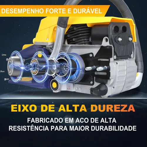 Versatilidade de uso: adequada para poda, corte de tora, limpeza de terrenos e uso geral em pequenas propriedades ou obras.