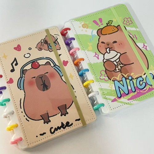 Caderno tipo Inteligente de disco, tamanho A5, PEQUENO 80 folhas, com estampa decorada de CAPIVARA.