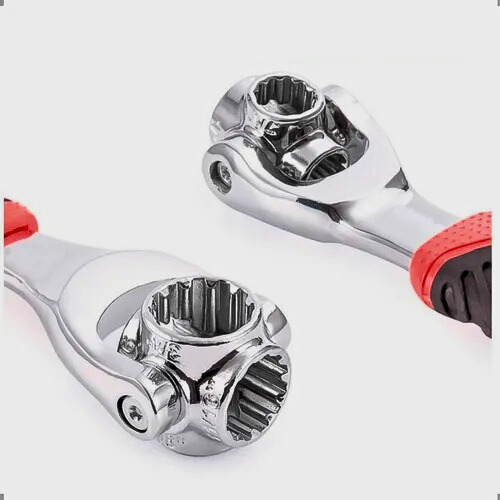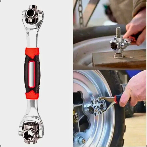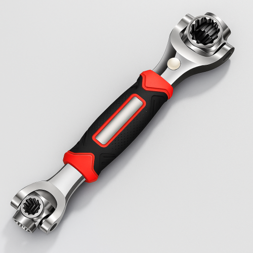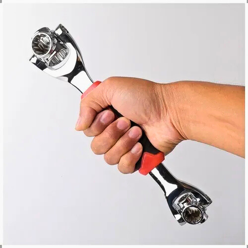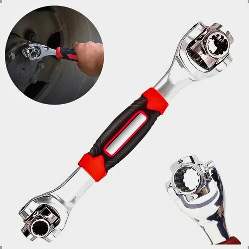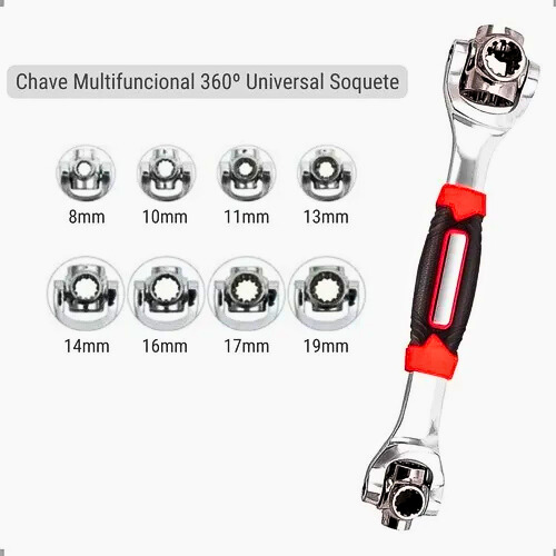 48 opções de uso em 1 ferramenta: cada uma das 8 “bocas” ajustáveis pode atender a múltiplos tamanhos e formas de parafusos/porcas (métrico, polegadas, formato flor, sextavadas, estrela etc.).