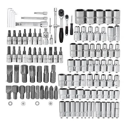 Este conjunto inclui uma ampla variedade de soquetes em milímetros, extensões, chaves catraca e bits de diversos tipos (Philips, fenda, Torx, hexagonal, entre outros), permitindo atender a praticamente todas as necessidades de aperto e desaperto de parafusos e porcas em diferentes aplicações. A catraca de precisão possibilita trabalhos rápidos e eficientes, reduzindo esforço e aumentando a produtividade.