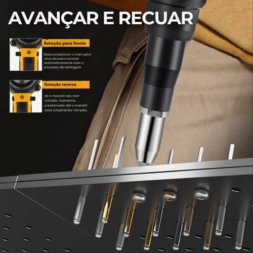 Aplicações: Fixação de rebites em metais, chapas, estruturas e manutenção geral