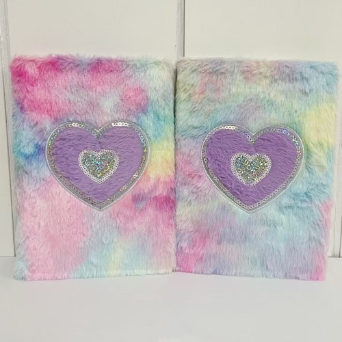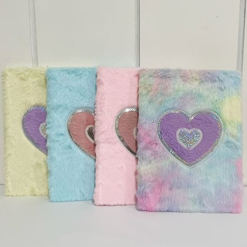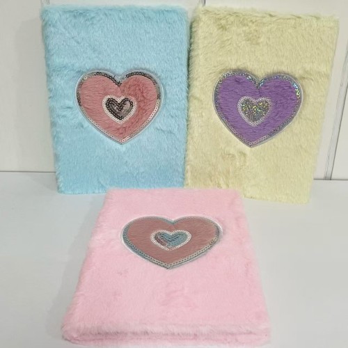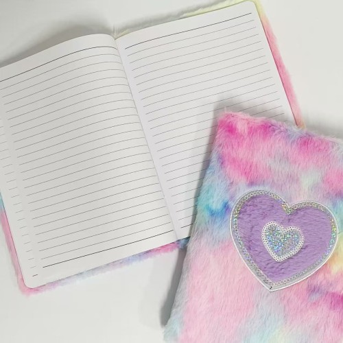 Capa de pelúcia super macia com design de coração, trazendo um toque mágico para suas anotações!