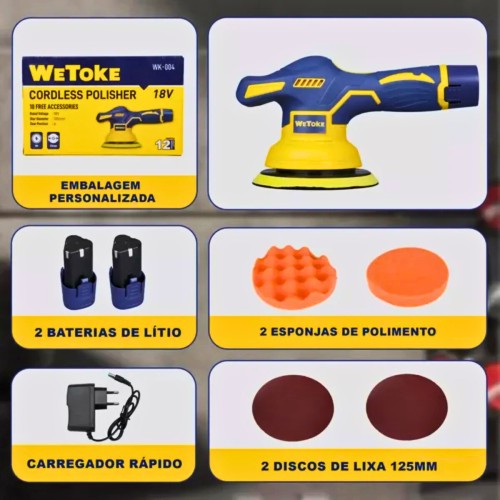 A Máquina de Polimento WK-004 foi desenvolvida para oferecer praticidade, mobilidade e alto desempenho em serviços de polimento e acabamento. Com funcionamento sem fio (18V), garante total liberdade de movimento, permitindo trabalhar em qualquer ambiente sem a limitação de cabos.