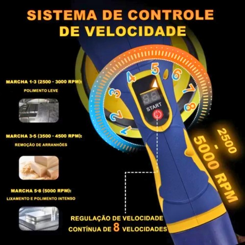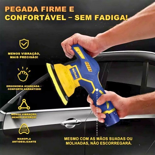 Seu design ergonômico proporciona maior conforto e firmeza na pegada, reduzindo a fadiga em usos prolongados. Equipada com motor potente e eficiente, entrega excelente desempenho no polimento de superfícies metálicas, automotivas, móveis, vidros e outros materiais que exigem acabamento de qualidade profissional.