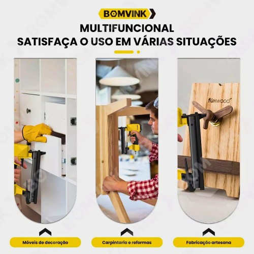 O Grampeador Pneumático Profissional BOM-8011 é uma ferramenta robusta e eficiente, projetada para oferecer alta produtividade e precisão em trabalhos de fixação. Compatível com grampos de 10 a 22 mm, é ideal para aplicações em estofaria, marcenaria, tapeçaria, montagem de móveis, embalagens e acabamentos diversos.