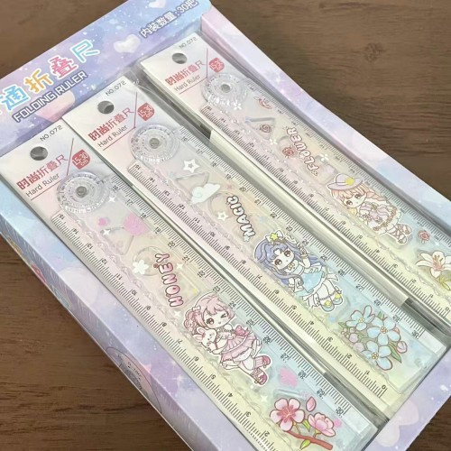 RÉGUA DE PLÁSTICO DOBRÁVEL 15 CM 30 CM FUNDO DESENHO DE MENINA SORTIDA