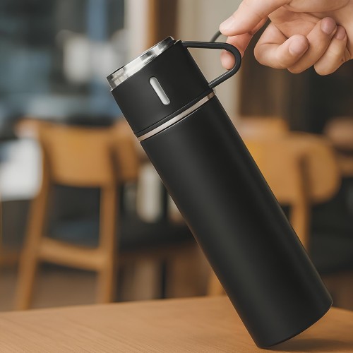 Construída com materiais de alta qualidade, a Garrafa Térmica Vacuum Flask Set é durável e resistente a impactos. Seu design elegante e clássico torna este produto um item de destaque em qualquer ambiente, seja ele corporativo ou casual.