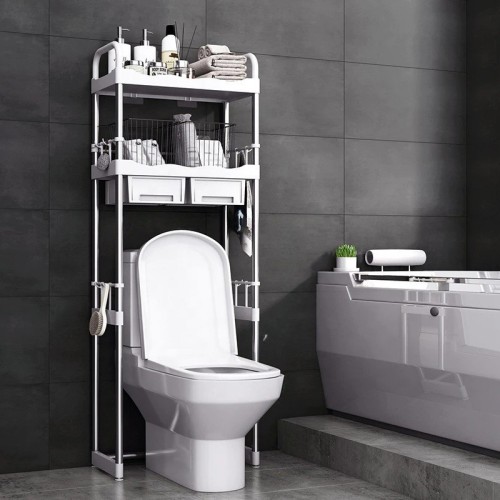 Este é um rack de armazenamento de banheiro com 3 prateleiras, que é muito resistente e durável, para um longo tempo de serviço. Você pode colocar sobre o vaso sanitário, por exemplo, e efetivamente utilizar espaços desperdiçados no seu banheiro. Ideal para manter tudo bem armazenamento e organizado. Perfeito para o seu banheiro ou lavanderia.