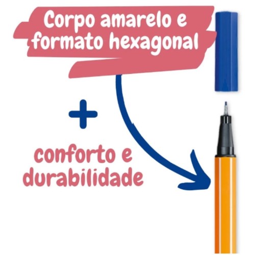 e 0,4mm para escrita e desenho, secagem rápida, tampa ventilada. Indicada para diferentes situações, pode ser usada tanto no dia a dia da escola, ou mesmo no trabalho, para detalhar um desenho técnico ou outras aplicações que necessitam de uma escrita fina e precisa.