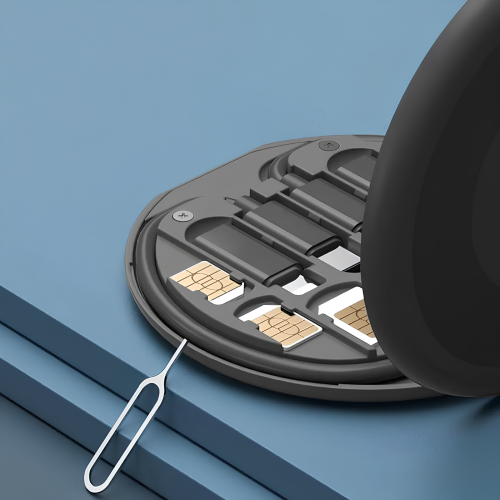 * Organização Inteligente: Slots dedicados para guardar chips e cartões de memória, mantendo tudo seguro e acessível.