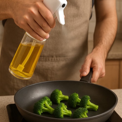Design Prático: Pulverizador fino e uniforme para um melhor controle da quantidade de óleo.