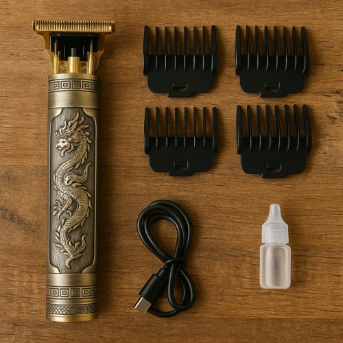 A máquina possui aparência elegante, portátil, durável, confortável em seu manuseio, com corte bem rente e sem machucar a pele. Indicado para desenhos e pezinho de cabelo, aparar pelos e barba.