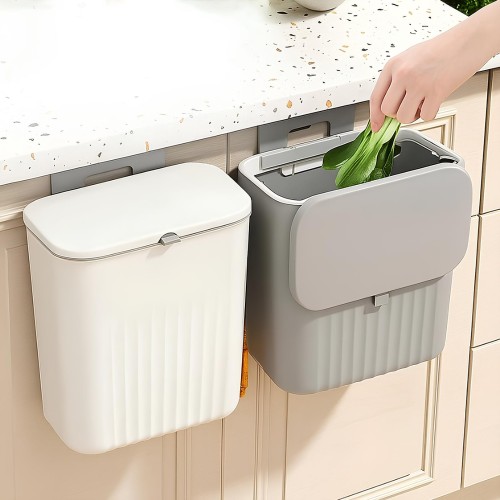 Suspensa na parede: A lixeira é projetada para ser suspensa na parede da cozinha, economizando espaço no chão e facilitando a limpeza ao redor da lixeira. Isso é especialmente útil em cozinhas com pouco espaço disponível.