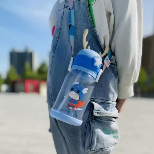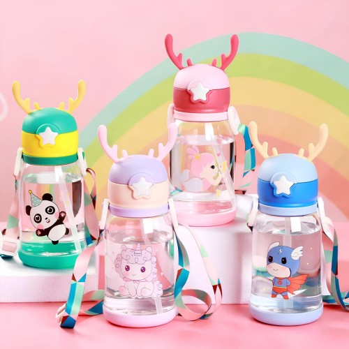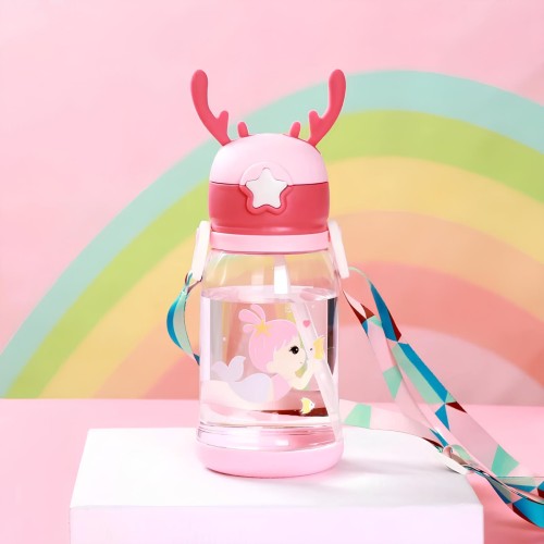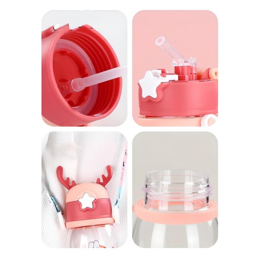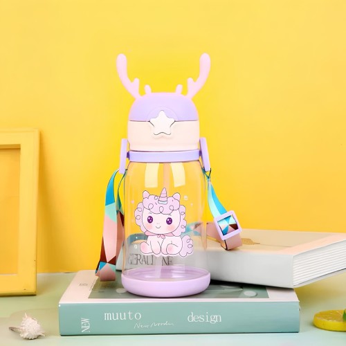 Uma garrafinha super legal recomendada para a criançada. Ideal para crianças, para uso escolar, lancheira, passeios. Um ótimo produto que além de útil é bastante lúdico para o seu pequeno. Acompanha alça, tornando ainda mais prática e fácil de carregar. Produto anatômico com tampa no sistema abre fácil, aberta em apenas um clique; Produzido em polipropileno, material atóxico, livre de BPA. CARACTERÍSTICAS: Estilo: Cartoon Capacidade: 600ml. Material: plástico e silicone. Bico de silicone de qualidade, material seguro, macio e protege suas gengivas. A tampa do copo possui anel de silicone de vedação embutido, que é seguro e higiênico. Fundo copo antiderrapante e resistente a queda. Design de alça portátil e ajustável, fácil de carregar ao sair. Tampa com trava, fácil e molinha de abrir, basta apertar na estrela. Evita derramamentos, pois é vedada e não vaza quando deita. TAMANHO: Diâmetro: 8,5cm. Altura: 19cm (21cm com as orelhinha). Peso: 140g (bem leve para as crianças). ITENS INCLUSOS: 1 Garrafinha Alce Plástica Com Orelhas. 1 Canudo De Silicone.