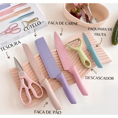Explore a excelência culinária e a praticidade das cores vibrantes que facilitam a identificação de cada faca, promovendo uma organização eficaz. Desde fatiar e picar até preparar carnes para o churrasco, este conjunto se destaca pela versatilidade e confiabilidade.