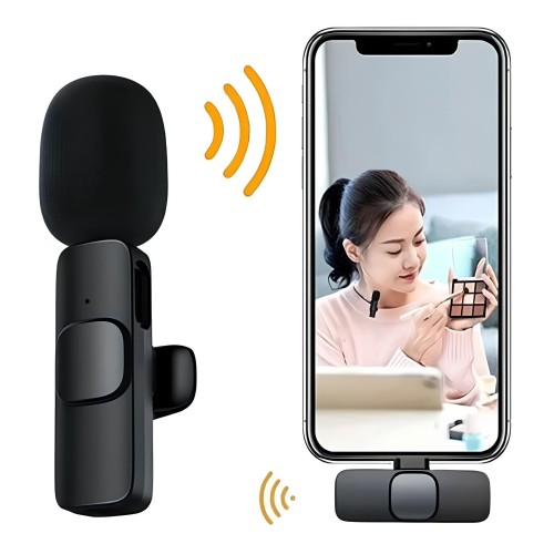 Microfone de Lapela Sem Fio K9 Vlog Compatível Tipo C e iPhone - K9-IP-2IN1 Altomex