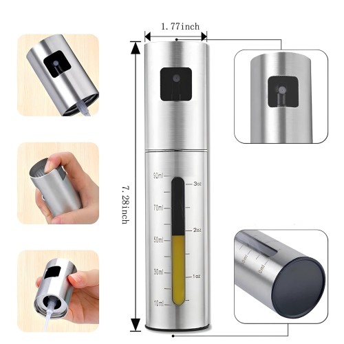 Leve mais praticidade e precisão para sua cozinha com este moderno spray de azeite em inox! Ideal para controlar a quantidade de óleo, azeite, vinagre ou outros líquidos utilizados em suas receitas, ele conta com um design elegante e funcional, além de um visor transparente com marcação de volume até 90ml.