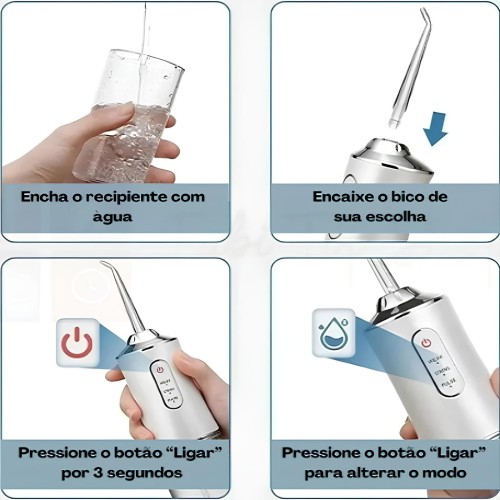 Irrigador portátil, poderoso para limpar os dentes e dar-lhe um hálito fresco.