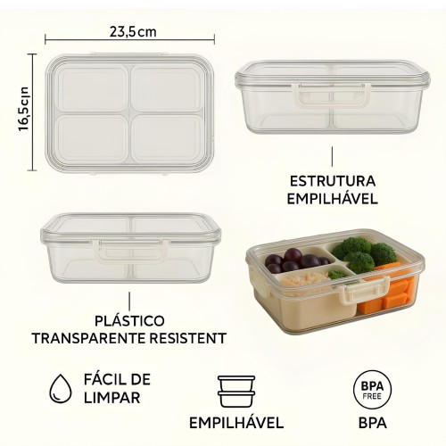 Pote 4 em 1, ótima opção para tempero, frutas, lancheira, petiscos, castanhas, e muito mais!