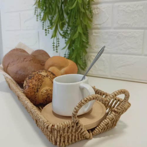 Usar cestos/bandejas na decoração da casa é uma das alternativas mais simples, práticas, viáveis e lindas. Se você busca por um produto simples e charmoso, certamente suprirá suas necessidades usando a Bandeja de Palha com Alça Coração para esta finalidade. Ela pode ser usado para decorar sua mesa, guardar itens de cozinha, lavabo/banheiro, cantinho do café, armazenar frutas e deixar sua casa ainda mais funcional. É fácil de higienizar e traz um ar de rusticidade aos ambientes, deixando cada espaço cheio de personalidade.