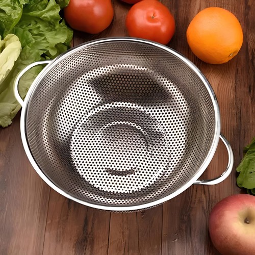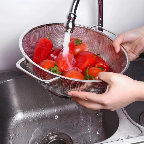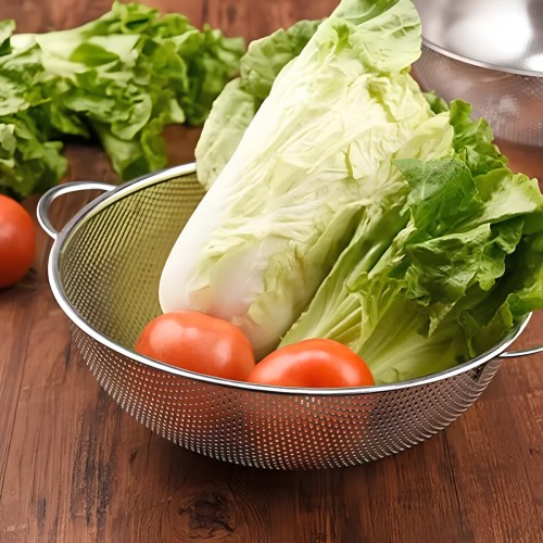 Facilite sua rotina na cozinha com o Escorredor Inox de alta qualidade!  Este escorredor é perfeito para lavar e escorrer arroz, legumes, frutas e muito mais. Fabricado em aço inoxidável durável, ele é resistente à corrosão e fácil de limpar, garantindo higiene e praticidade no seu dia a dia.
